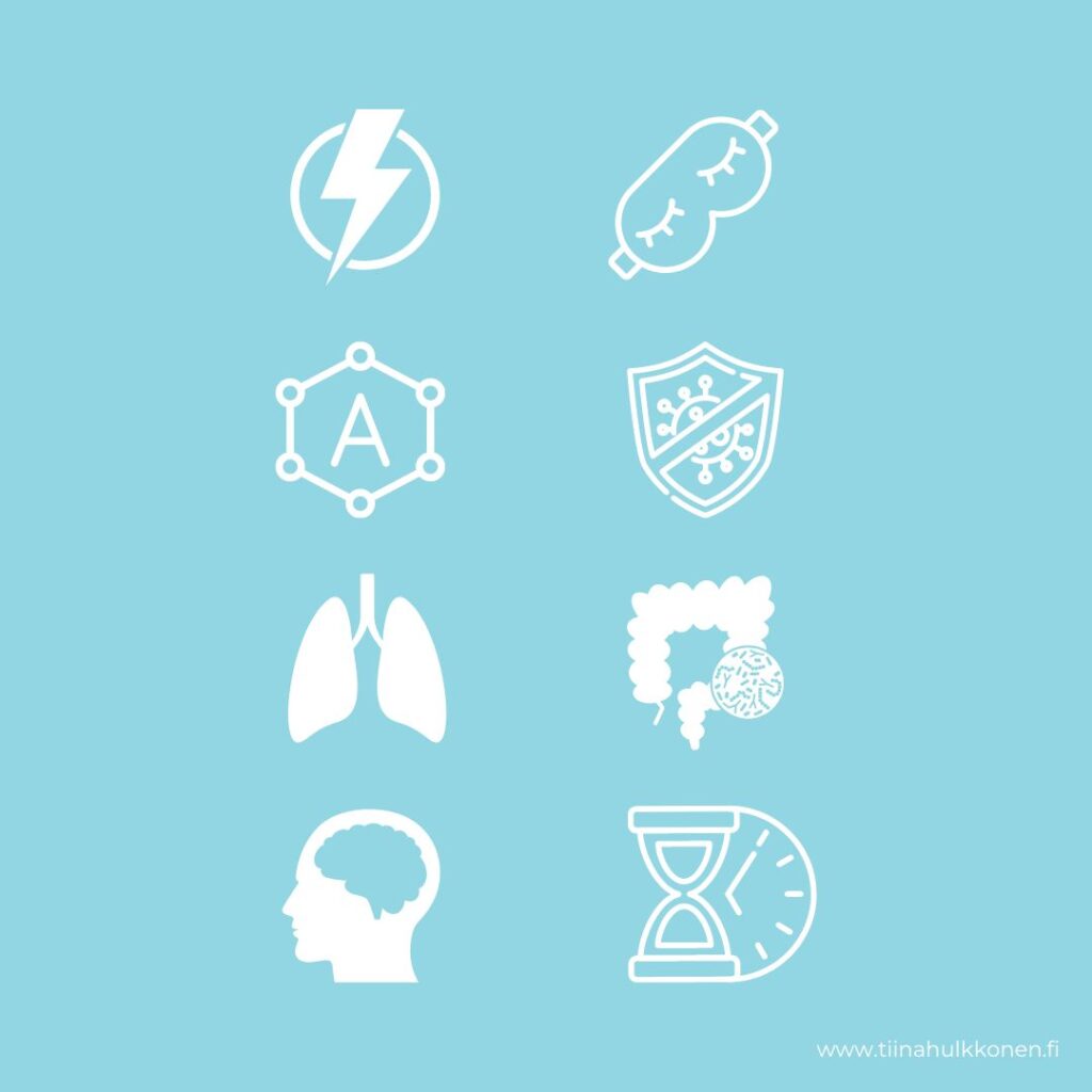 - Ehkäisee tulehdusta ja allergiaoireita